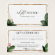 Modern and elegant design printed Summer Tropical Leaves and Gold Glitter Frame Customised Gift Certificate Card that can be customised with your text. Please click the "Customise it" button and use our design tool to modify this template. Check out the Graphic Art Design store for other products that match this design!