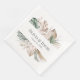 This stunning Summer Tropical Orchid and Monstera Paper Napkin is part of the Tropical Garden collection, which features a beautiful arrangement of orchids, monstera leaves, and palm fronds in earthy colours of green, brown, and white. The design is arranged to look like a ribbon, with an elegant boho font displaying the names of the bride and groom as well as the date of their wedding.