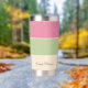 This colourful horizontal stripes tumbler with shades of pink, sage green, and cream for a fun and elegance look. The fruit basket colour pattern is perfect for adding a touch of summer vibe to your travel. Also, your name will personalise to the classy calligraphy script.