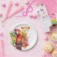 Cute birthday party paper plate featuring a parrot celebrating summer. For summer-born kids. Customise this product by adding your party information.