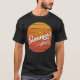 Men's T-shirt with Summer vibes cursive style with a round retro sunset. This summer men's t-shirt is perfect to help you enjoy your vacation while looking cool.