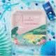 Add tropical flair to your beach or pool birthday party with this cool summber vibes pink paper plates. Personalise with the your name and event's name.