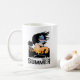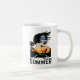 This image is a stylised graphic that combines several elements to evoke a summer theme. At the centre is a silhouette of a woman's head with flowing hair, which is filled with a vibrant sunset scene featuring palm trees and a car. The sunset colours transition from deep orange at the horizon to lighter shades of blue and purple as they move upward, creating a striking contrast with the black silhouette. Below the image, the word "SUMMER" is prominently displayed in bold, uppercase letters, with a stylised underline that resembles a road or a wave, further emphasizing the summer and travel theme. This image is interesting because it creatively merges different symbols of summer—such as sunsets, palm trees, and road trips—into a cohesive and visually appealing design.