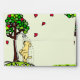 Cute Yellow Labrador Cartoon Envelopes with Summer feelings. Unique and funny Labrador Retriever Cartoon created by Naomi Ochiai from Japan. An adorable Yellow Lab Puppy is having a shower in the yard!! Whimsical red hearts flying around his/her favourite green tree. White daisies are blooming. Great fun gifts for dog lovers who own Yellow Labradors.