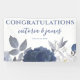 Summer Blue Grey Floral Wedding Banner for your Reception Accessories. Designed with watercolor flowers in shades of blue and soft grey, on a white background. The text includes: CONGRATULATIONS!, The Bride and Groom's First Names and Wedding Date. To personalise, simply insert your details into our easy template, replacing the sample text. Be sure to view the entire Summer Blue Grey Floral Wedding Collection for matching cards and accessories.