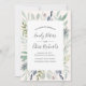 Invite your guests to your wedding with this gorgeous invitation featuring watercolor green foliage on a creamy coloured background and modern hand-lettered typography. The back side features a simple floral pattern. Perfect for summer or spring weddings outdoors. Other coordinating items are available. See below for the collection.
