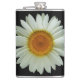 Fresh summer white daisy on a cool graphic black background, or you can customise the background colour. Simple stylish and cool modern pop art hip flask. Great for the gardener's vodka, something to drink whilst gardening, great garden gift and ideal for a garden party or barbeque. A beautiful photograph of a white daisy with a golden yellow centre, a great gift for her! If you love garden and wild meadow flowers you will love this design. From a floral photograph by Paul Stickland for Flower Barrow.