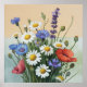Brighten any room with this joyful wildflower bouquet poster featuring cheerful white daisies, scarlet poppies, blue cornflowers, and soft lavender blooms against a warm peach-to-mint gradient background. Perfect for cottagecore, boho, farmhouse, or Scandinavian interiors – ideal above a bed, sofa, entryway, or nursery. Printed on premium matte paper with vibrant yet gentle colors that instantly lift the mood. Available in multiple sizes – bring the carefree beauty of a summer meadow indoors all year round!