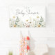 This design features a watercolor border of wildflowers in shades of gold, red, blue, and green. Perfect for spring and summer baby showers.