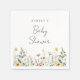 This design features a watercolor border of wildflowers in shades of gold, red, blue, and green. Perfect for spring and summer baby showers.