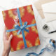 A beautiful summer sunflower abstract mosaic design with an orange red background.