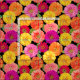The pretty garden zinnias on this floral fabric are blooming in shades of pink, purple, orange, yellow and red on a black background. Perfect for anyone who loves flowers! Designed by world renowned artist Tim Coffey.