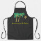 Mosaic, graphic drawing, of an island, with two, coconut trees, and hut, displayed with phrase, "Summering In The Tropics"-in colours of; green, yellow, turquoise, blue, taupe, brown, and black.