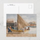 A postcard with the fine art watercolor painting by the American artist Winslow Homer (1836-1910), Summertime (1880). A summer landscape of a group of boys mooring a sailboat on a sandy beach.