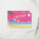 This colourful pink, summer wedding RSVP is accented with a bright sun, seagulls, blue water, and a couple of tropical drinks. The type gives this RSVP a retro feel, and keeps it fun and playful, making it perfect for the beach, Caribbean, Hawaiian, seaside, tropical or summer wedding.