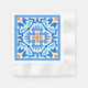 These beautiful napkins feature a cool, summery geometric design. This aqua and bright blue pattern has an orange accent in the centre. Perfect for relaxing on the patio or around the pool with snacks and a cold drink.