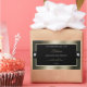 The design features a noble shimmering platinum frame with fine decor lines, on a plain black background.