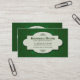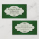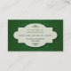 A kelly green damask pattern makes up the background on this business card while the business information sits in an ornate frame. This is a truly versatile card that can be used by retailers, wholesalers, consultants, designers, event planners or those in the textile field. Available in alternate colours with matching products.