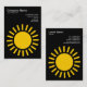 A business card template with a Sun symbol. Company name, business type and address on the front with name, job title, telephony, web and email addresses on the back, with the same layout.