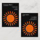 A business card template with a Sun symbol. Company name, business type and address on the front with name, job title, telephony, web and email addresses on the back, with the same layout.