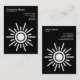 A business card template with a Sun symbol. Company name, business type and address on the front with name, job title, telephony, web and email addresses on the back, with the same layout.