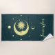 Sun and moon celestial design with moon phases beach towel