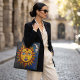 Embrace the celestial beauty with this tote bag featuring a vibrant sun and moon design. The rich colors and unique details create a stunning, mystical look, perfect for those who love cosmic and artistic themes in their accessories
