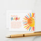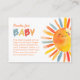 Sunshine baby shower book request cards featuring a radiant, cheerful sun with a delightful face, and a "books for baby" message.