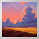 Artwork of the sun in the sky casting its light on the landscape. This stunning artwork captures a majestic sunset or sunrise painting the sky in a spectacular display of oranges, pinks, and purples. Dramatic clouds gather above a field of golden grass, creating a sense of awe and wonder. The vibrant colours and sweeping landscape make this a truly impactful piece that brings the drama of the outdoors into your home. The warm light spills across the foreground fields and distant mountains, while the sky ignites with intense colour. It's a moment of peaceful grandeur and vibrant energy, captured in a richly detailed, illustrative style. This piece and be customised, printed, and or downloaded.