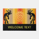 Southwestern Sunset Colours Kokopelli Rug Doormat Vivid colour combination that you can customise background colours to match your decor. Kokopelli Native American Indian cultures. Attributed to ancient aliens or tribal art and inspired by cave and rock drawings. Customise your Southwestern Style Native American door mat rug colours and styles. Great gift idea.