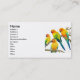 Design of colourful sun conure parrots by illustrator Carolyn McFann printed on fully customisable business cards for bird lovers.
