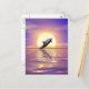 Postcard with my artwork of a sunny water scene and a leaping dolphin.