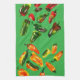 Add a bold splash of garden-fresh color to your kitchen! This vibrant kitchen towel features the signature Sun-Drenched Peppers design—a hand-painted watercolor medley of spicy reds, glowing oranges, and deep greens—now set against a brilliant, leafy green background for maximum impact.