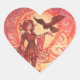 This illustration has an original style, with smooth, bright watercolor paint complimented by strong, distinct, swirling line and ink pen. A half-elf druid dressed in a red, firey dress with a flame-shaped finish and wide sleeves, with hide armour and a pet hawk stands on desert land. In the background is a large, stylised, burning yellow sun with red, red-orange, and orange swirling flames, and a red-violet, red and light yellow gradient sky. This is based off a character I played for Dungeons and Dragons. She is a druid half-elf whose powers are related to fire and the sun. She lef home when she was a teen to learn more about her mother, who was an elf. I did the painting for a good friend of mine. Watercolor and ink pen.