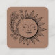 Sun Floral Boho Line Art Elegant QR Code Mocha Square Business Card