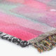 A quality printed throw has its advantages. This is a much finer weave throw than its loopier cousins, and though lighter, it is worth the investment for custom room accessorizing. The back is much prettier than the typical brown, and the fringe on the long sides very vivid, the selvage nicely done. Before photographing, I washed the throw in cold water, delicate, with a thicker woven throw the same size. On tumble dry low, this throw was dry in half the time as the other. This is a very practical quality if you use throws for furniture covers or to wrap up in frequently. The sleekness of the fabric makes it a great layer for accenting or protecting without the feeling of sitting on too much stuff. Perfect for napping or when you feel a light chill coming on. The color printing is beautiful and on this fabric, matched the design and color of my Photoshop image. This is an advantage for blending room fabrics and colors. The fringe on the short sides prints the colors from the design image and therefore varies from the side fringe. I streaked a white fractal line through the plaid pattern to give the illusion of weaving. This printed as crisp as an illusory thread, and put some white in the short side fringe, showing another advantage of print vs loomed- for artistic purposes, line lines, detail, and color integrity can be planned and preserved. My loomed throws have color limitations and more of a needlepoint texture. Print throws reproduce an exact image. The throw felt a little stiff straight out of the package, but this went away in the first delicate wash. Of course I searched the wash water for ink or bleeding and there was none.