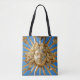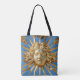 Close-up of Symbol of Louis XIV the Sun King (Roi Soleil) on the golden gate of Chateau de Versailles with blue sky in the background - Versailles, France