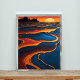 This mesmerising abstract artwork features a vibrant interplay of orange, blue, and black hues, evoking the feeling of a sun-drenched landscape. The swirling patterns and organic forms create a sense of depth and movement, inviting the viewer to explore its intricacies. Perfect for adding a touch of modern art to your home or office.