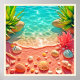 Dive into the serenity of a sun-drenched beach with this stunning AI-generated and artist-enhanced design. The scene features crystal-clear turquoise water gently lapping against a shore of soft, pink-hued sand adorned with an array of unique seashells and vibrant coral. It's a perfect blend of peaceful coastal beauty, created to transport you to a tranquil paradise. This unique piece of art brings the calming essence of the ocean to your home. Order today and embrace the joy of this seaside escape!