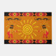 Southwestern Sun Kokopelli Rug Doormat Vivid colour combination that you can customise background colours to match your decor. Kokopelli Native American Indian cultures. Attributed to ancient aliens or tribal art and inspired by cave and rock drawings. Customise your Southwestern Style Native American door mat rug colours and styles. Great gift idea.