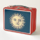This is a standard metal lunchbox that appears to work just fine. We designed this box ourselves with an uploaded photo and custom text on the front and back. It looks absolutely beautiful except the front of the lunchbox is not centered like it shows in the photo. The print borders don't align with the inset flat part of the box where the preview photo online showed it perfectly centered in there. The back looks nice and centered though.