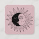 Sun & Moon Boho Line Art Elegant QR Code Pink Square Business Card