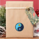 Yin yang symbol sticker with a folk art style sun-moon motif.