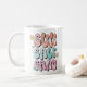 A pretty groovy style colourful typography saying for the summer vacation, that reads: Sun, salt, sand.
