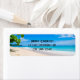 Address labels with a lovely photograph. A white sandy beach with azure blue water. Relaxing image with a sunny sky and gentle foamy surf. Tranquil and secluded.