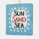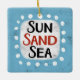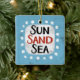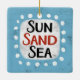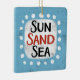 "Sun Sand Sea" is a fun text design with a white accent shape surrounded by white whimsical textured dots.