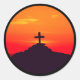 Sun setting on the cross, beautiful sunset classic round sticker