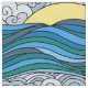 Hand-drawn vintage illustration of a sunset over the ocean with alternating colours.