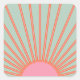 Sun Sunrise Green And Pink Abstract Retro Sunshine Square Sticker