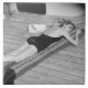 Young woman sun tanning on cruiser deck (B&W), elevated view | George Marks | AssetID: 72131229